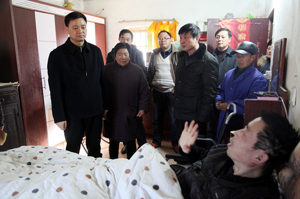 姜建友一行首先代表集團公司黨委向農場領導班子及廣大干部職工表示新春的問候和良好的祝愿。還在幾位場領導及相關部門和單位負責人的陪同下,重點走訪慰問了兩個貧困家庭,向他們送上了慰問金、慰問品特別是集團公司和各級的溫情關愛和溫馨祝福。在孫謝居委會單身兄弟家庭范小八家,姜建友一行仔細察看并詢問了他家的生活、兄弟倆的身體及農場采取的精準幫扶措施落實等方面的情況,同時還針對白馬湖困難群體較多的實際,要求農場各級領導在精準幫扶上再出實招、再作努力,希望兄弟倆也要自強自立,早日過上美好生活。在六支居委會因病致盲的居民卞元翠家,姜建友一行熱心地與她拉起了家常,詳細詢問了她的身體情況和家庭生活情況,鼓勵她家要進一步樹立起生活的信心,在各級組織的關愛幫助下,早日戰勝病魔和目前的困難。(張志成)