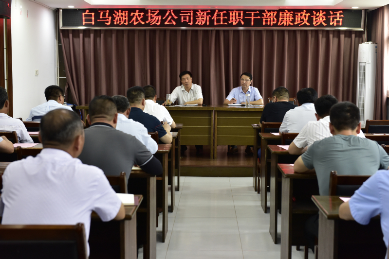 為切實(shí)落實(shí)全面從嚴(yán)治黨主體責(zé)任,提高新任職干部對(duì)黨風(fēng)廉政建設(shè)重要性的認(rèn)識(shí),筑牢新任職干部廉潔自律的防線,7月2日下午,白馬湖農(nóng)場(chǎng)公司對(duì)40多名新提拔或崗位調(diào)整任新職干部開(kāi)展集體廉政談話,黨委書(shū)記姚春華、紀(jì)委書(shū)記韓躍武分別進(jìn)行談話。