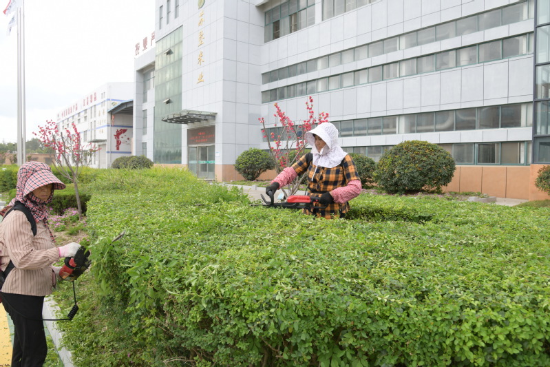 通過本次養護,全面修復了各區域綠化景觀出現的草坪斑禿、黃土裸露等問題,提升了整體綠化品質和景觀效果。下一步,資源中心將繼續做好精細化管養工作,加強綠化養護管理,進一步營造場域更加靚麗的綠化景觀效果,以自己的實際行動提升淮海廣大職工居民的幸福感、獲得感。圖為環衛人員在對淮海有限公司的綠籬進行修剪。