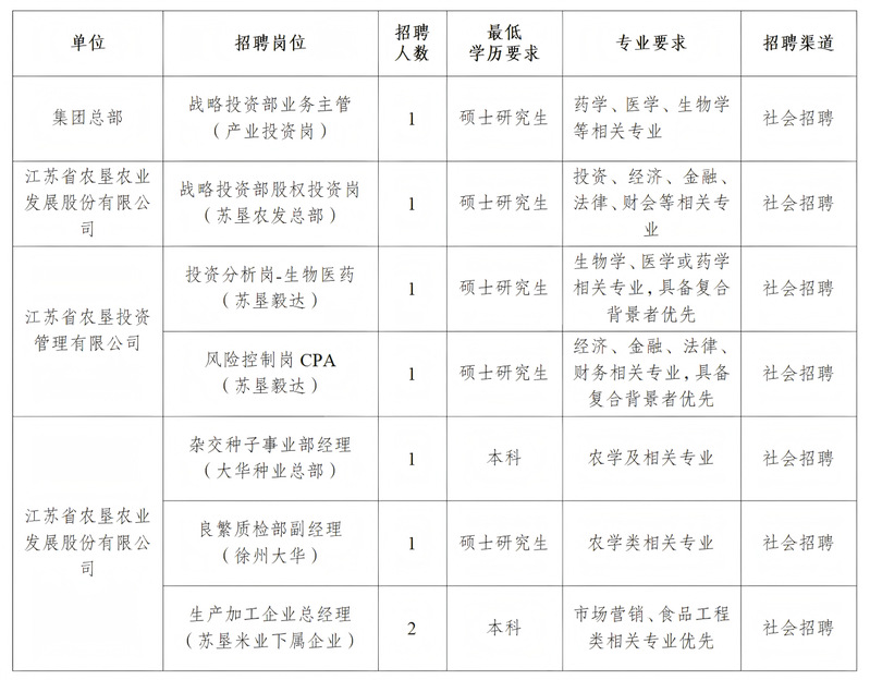 江蘇農墾2025年秋季集中招聘公告(二)