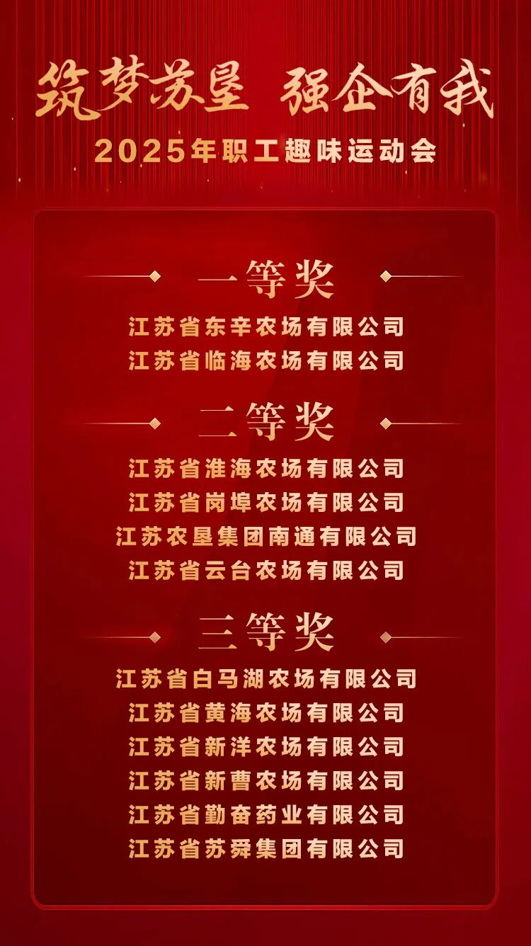 燃動(dòng)金秋,趣享運(yùn)動(dòng)。10月19日,江蘇農(nóng)墾2025年“筑夢(mèng)蘇墾,強(qiáng)企有我”職工趣味運(yùn)動(dòng)會(huì)在寧成功舉辦。集團(tuán)黨委書記、董事長(zhǎng)吳本輝,黨委副書記朱浩,副總經(jīng)理劉耀武,黨委委員、副總經(jīng)理王立新,黨委委員、總會(huì)計(jì)師殷紅,黨委委員、副總經(jīng)理劉衛(wèi)華、鄧國(guó)新出席活動(dòng)。