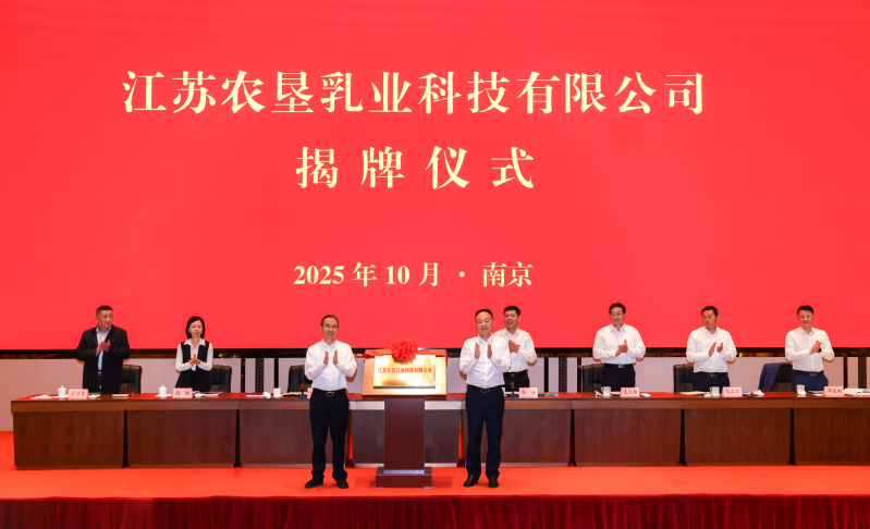 會上,吳本輝、劉耀武共同為江蘇農墾乳業科技有限公司揭牌。新曹農場、新洋農場、勤奮藥業、蘇墾漁業作了交流發言,海安農場、通宇公司作了表態發言。