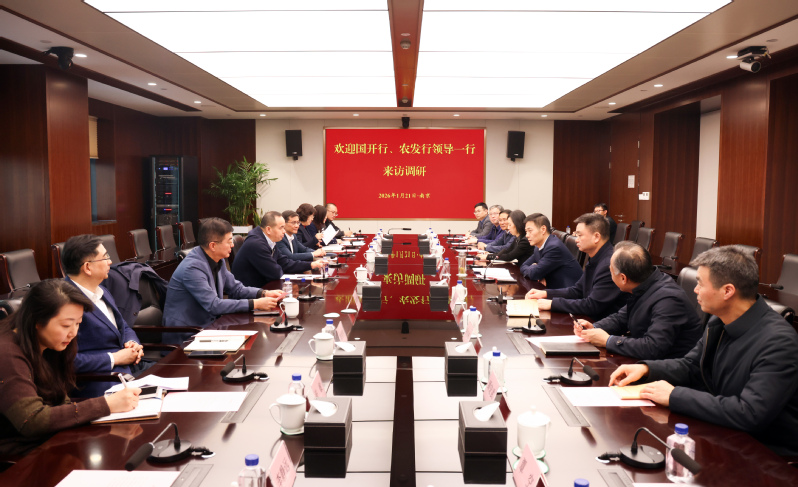 1月21日,國家開發銀行總行黨委委員、副行長陳夢蒙到集團公司調研交流。集團黨委書記、董事長魏愛春陪同調研江蘇農墾展廳并座談交流。集團黨委副書記、總經理姜建友,黨委委員、總會計師殷紅,國開行江蘇分行行長黎鵬,農發行江蘇分行行長高常青參加座談。陳夢蒙介紹了國開行重點業務開展情況,充分肯定了江蘇農墾改革發展取得的成效。他指出,江蘇農墾是全國農墾系統的標桿企業,改革發展走在行業前列,糧食安全國家隊、現代農業示范區、對外合作排頭兵的職責使命與國開行的服務導向高度契合。希望以此次交流為契機,與江蘇農墾在新型政策性金融工具、康養產業等領域加強項目精準對接,整合政策與資源優勢,共同開創銀企合作新格局。魏愛春對陳夢蒙一行的到來表示歡迎,并介紹了集團改革發展總體情況。他表示,一直以來,國開行、農發行充分發揮政策性銀行優勢,為集團高質量發展注入了源源不斷的金融“活水”。期待國開行、農發行進一步發揮政策性金融引領作用,提供多樣化融資、融智服務,持續深化雙方合作關系,攜手實現互利共贏。姜建友回顧了集團以紅為本色、以綠為底色的發展歷程,并介紹了主要產業板塊運行情況。黎鵬、高常青分別結合國開行、農發行業務布局及服務