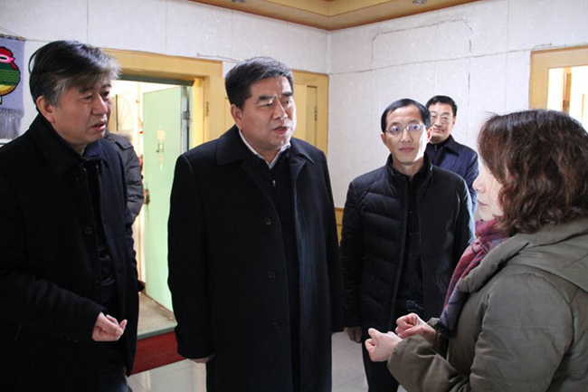 2月7日上午,集團公司紀委書記章朝陽一行到濱淮農場走訪慰問困難職工,農場黨委成員李德利、傅龍光、馬傳武陪同?! £惼际菫I淮農場四分場退休職工,兒子因車禍去世,后兒媳又離開了這個家庭,女兒也因婚姻問